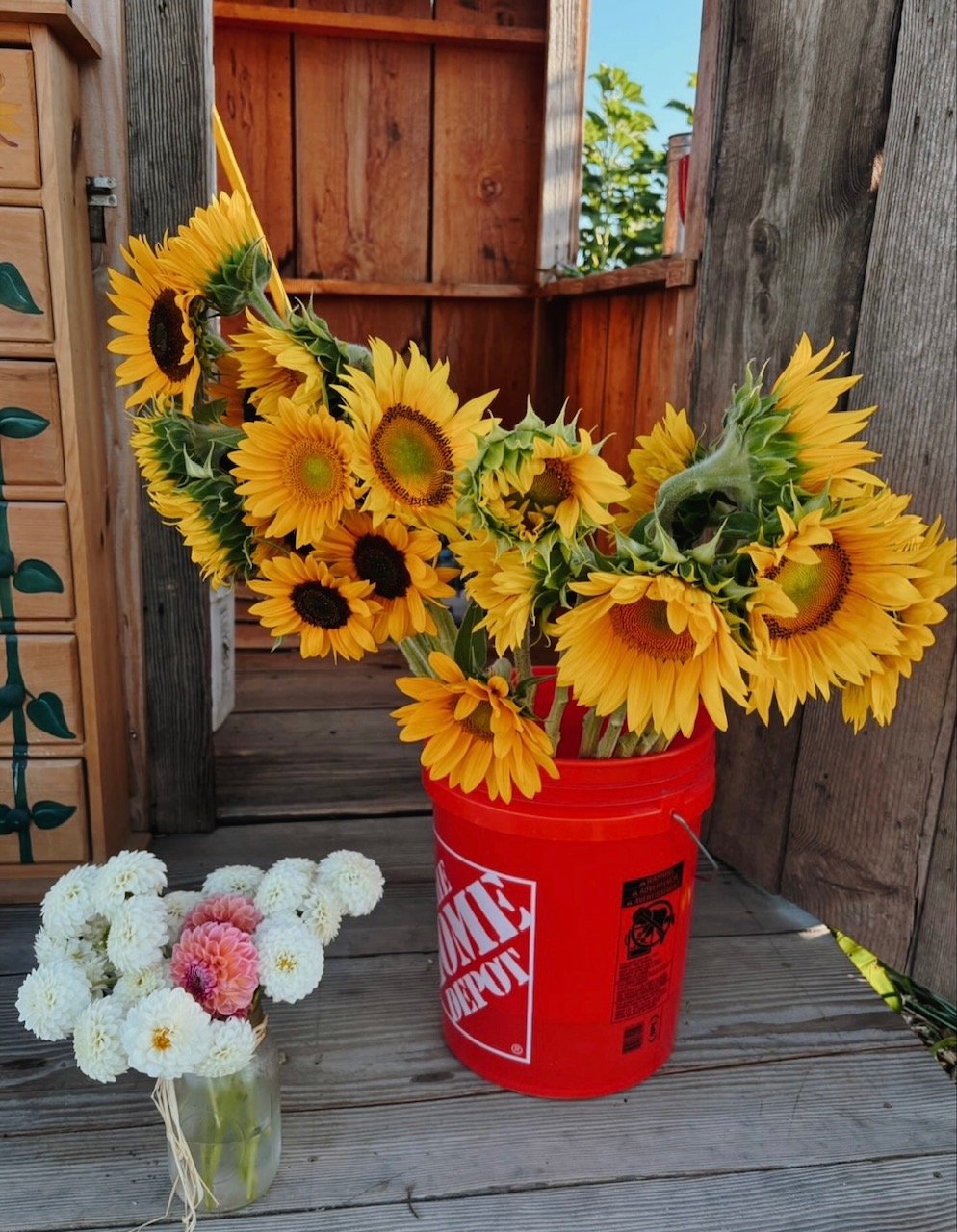 Flower options: dahlias, sunflowers, cosmos, zinnias, etc.